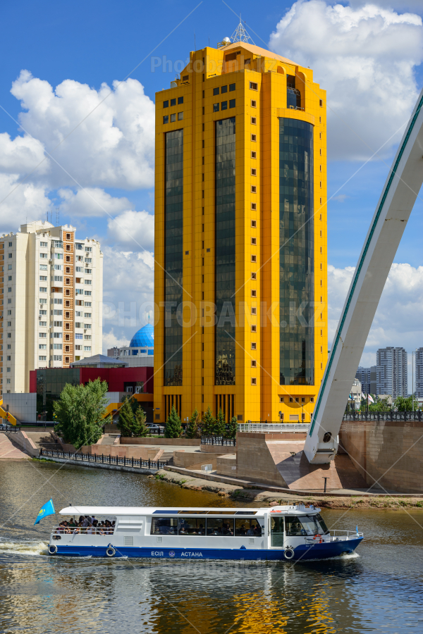 Bridge "Karaotkel" (Ramstore) and Bussines Center Astana Tower. /Astana/Astana, Kazakhstan - jule 5, 2014